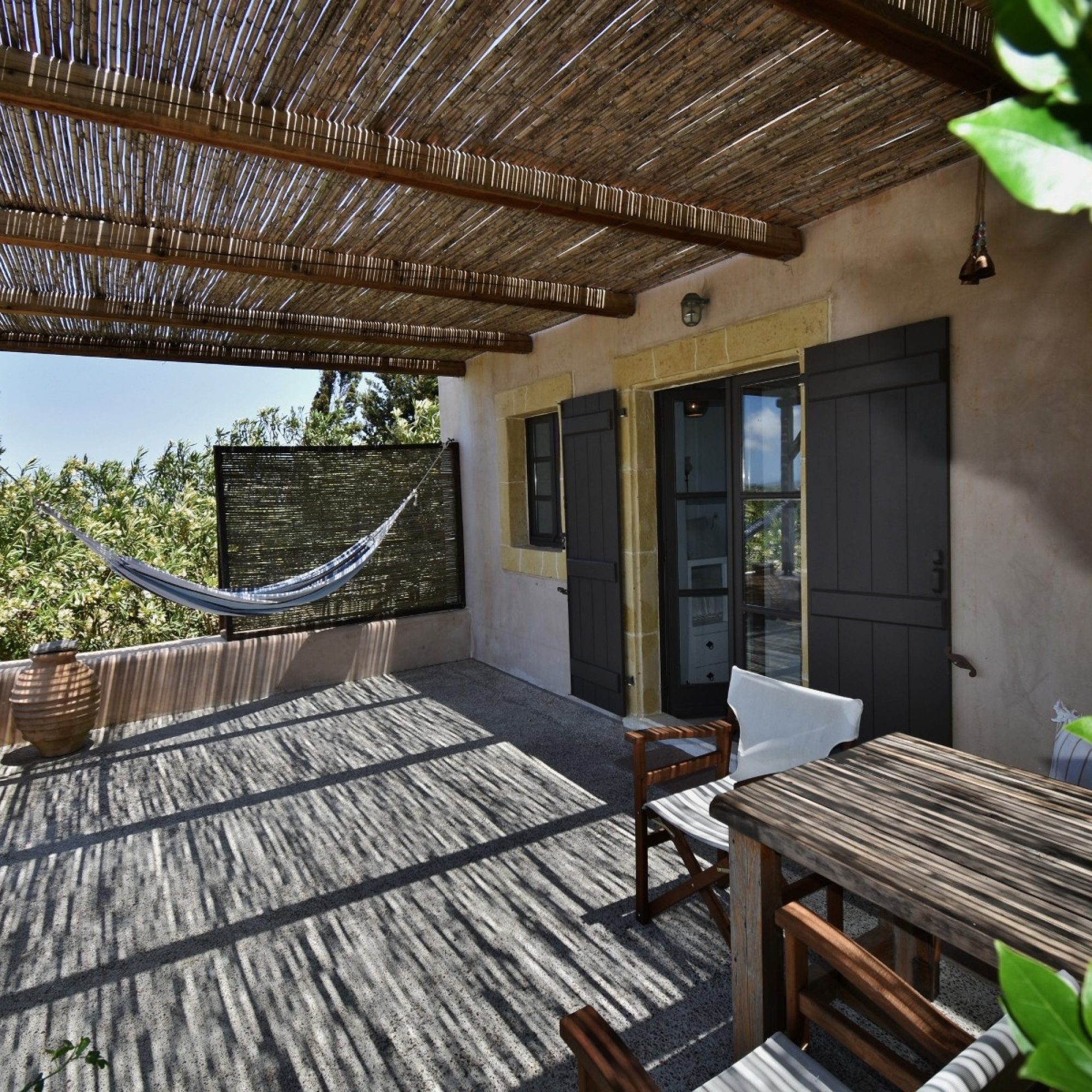 Two spacious and notably private terraces (each 25m²) extend your living space into a tranquil Mediterranean garden: