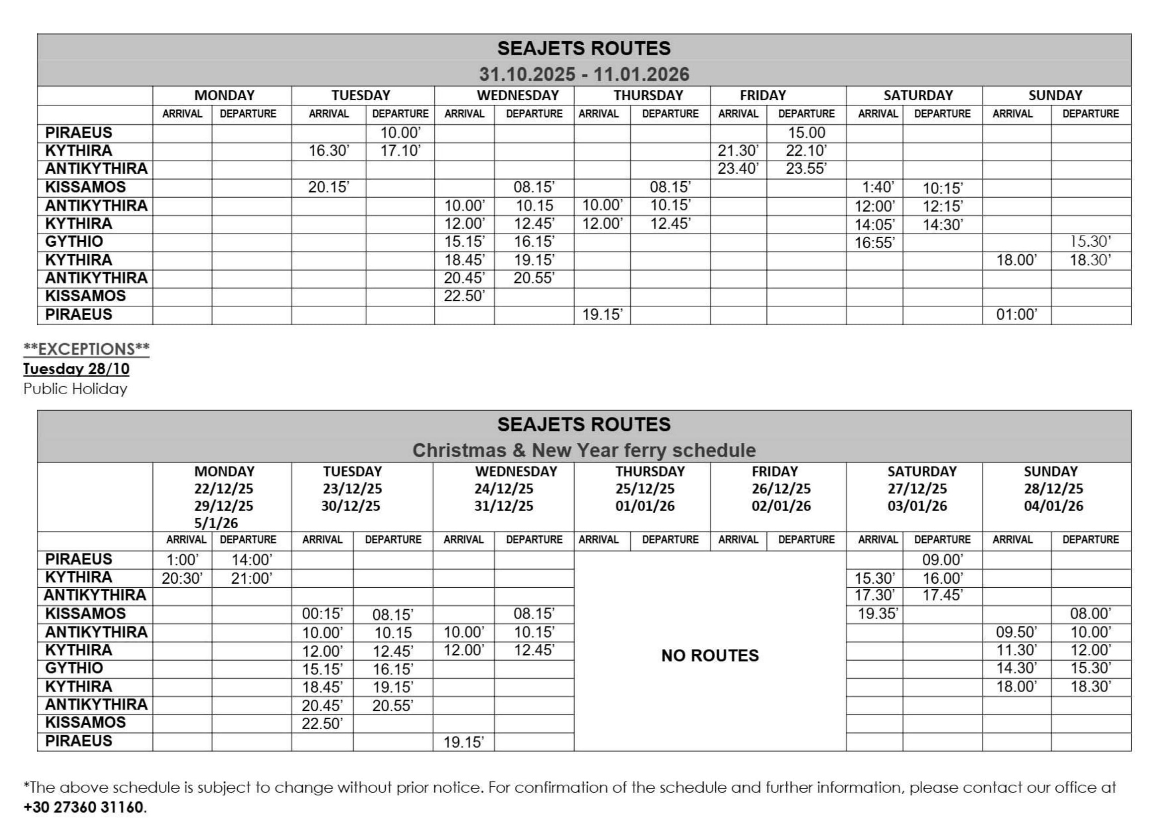 | KYTHIRA-PIRAEUS | 06:30 | € 22,00 | € 79,00 |